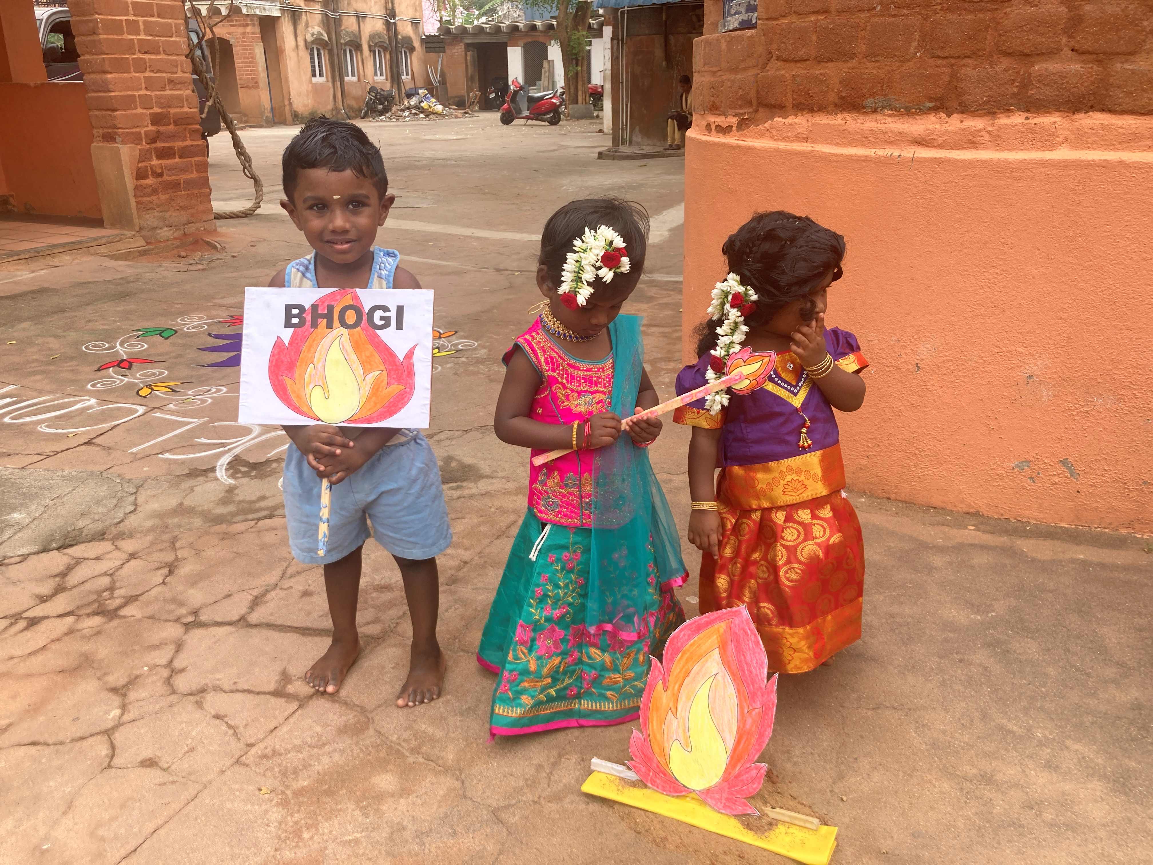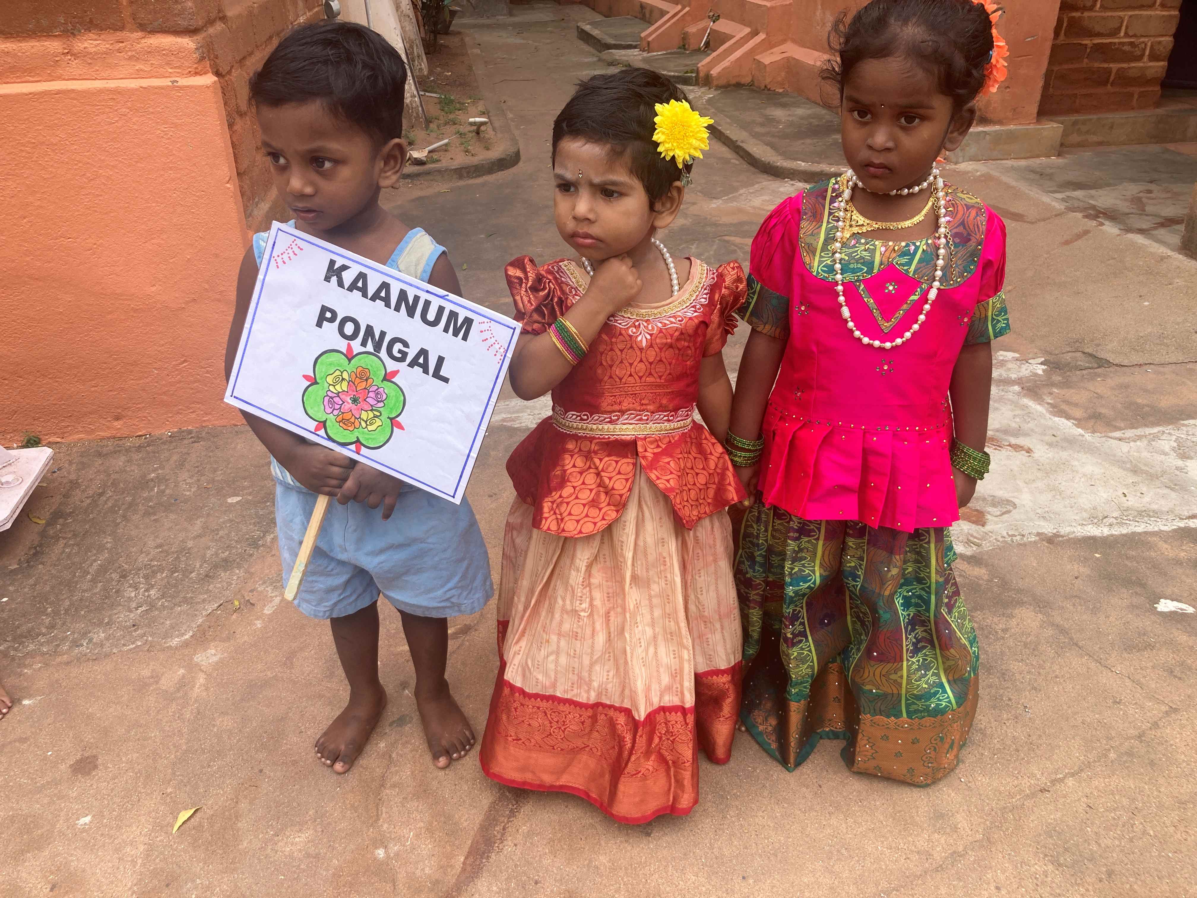 Cette année nous avons assisté à la fête de Pongal organisée par les éducateurs pour les enfants de maternelle, puis à la ferme de Tuttipakam et à Amaidi Illam (lieu d'accueil des personnes agéees).