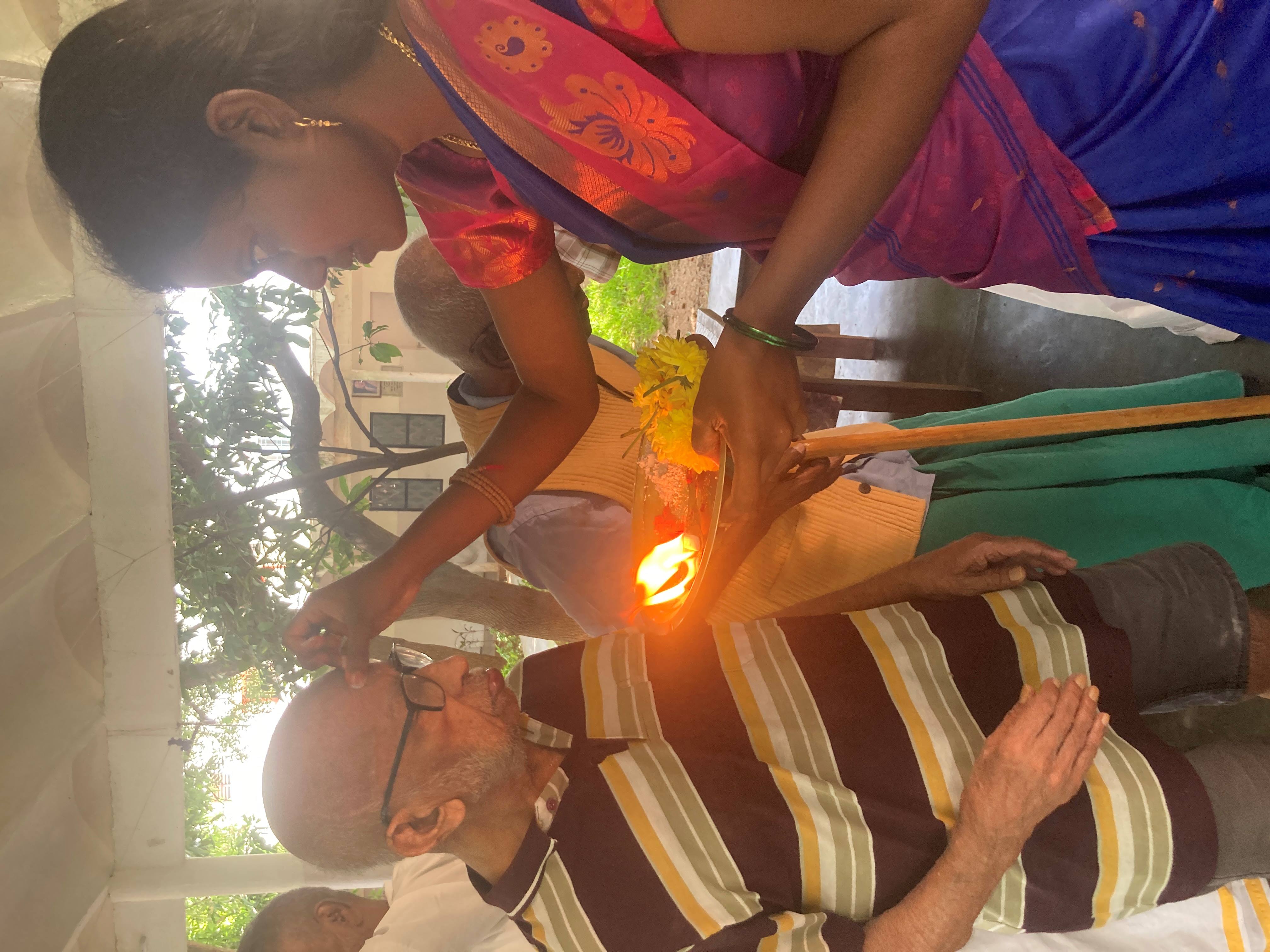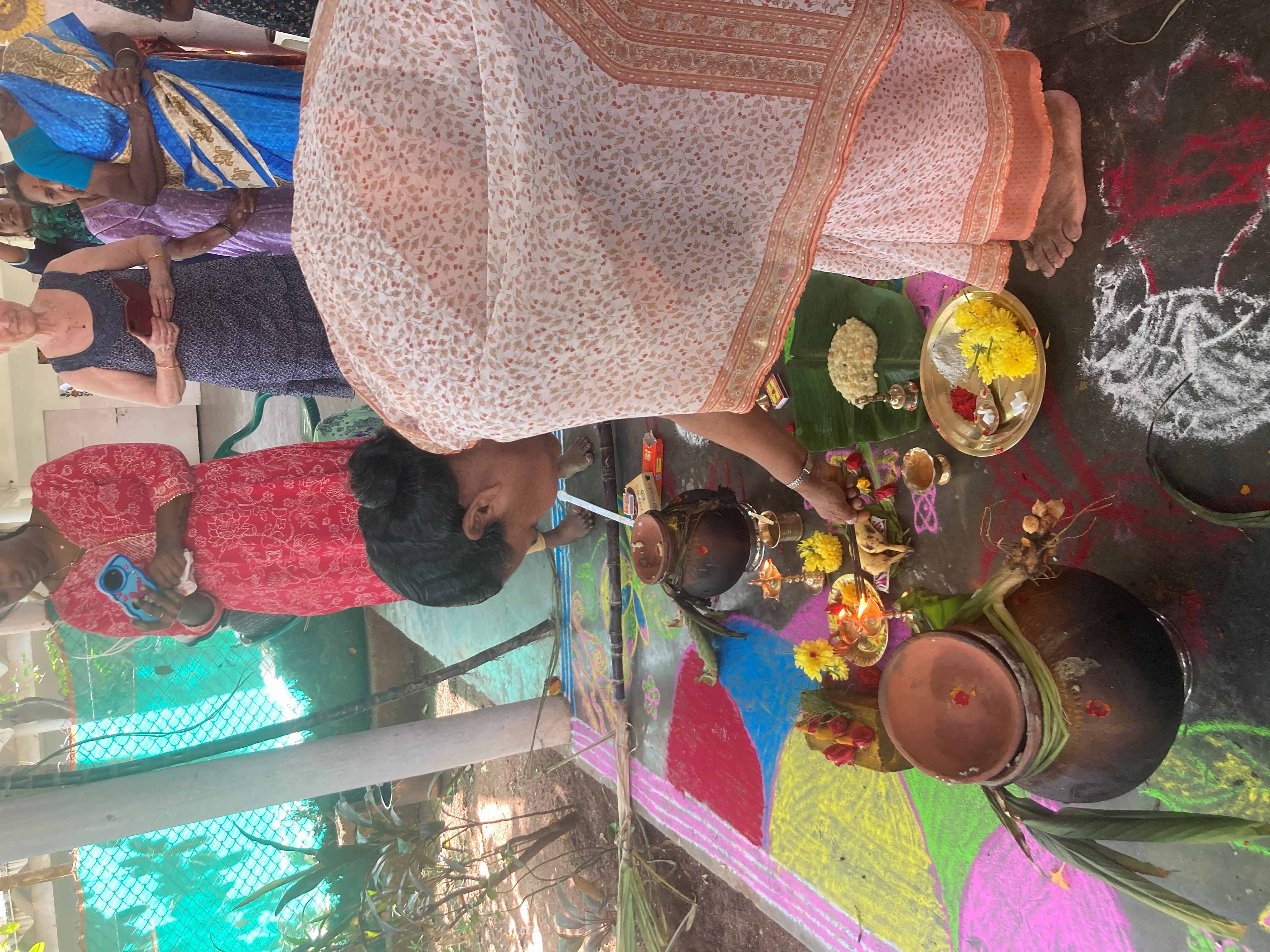 Avec les résidents d'Amaidhi Illam, il y avait beaucoup de solennité pour cette fête qui, même si elle n'est pas religieuse, comporte un certain nombre de rituels qu'il faut absolument respecter si l'on veut que l'année à venir soit prospère.